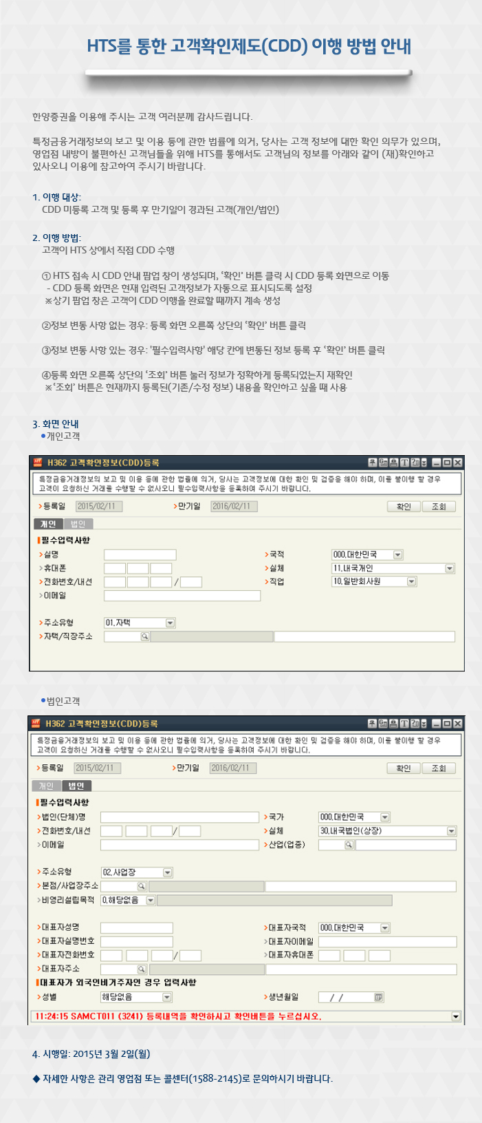 HTS를 통한 고객확인제도(CDD) 이행 방법 안내