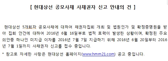현대상선 공모사채 사채권자 신고 안내